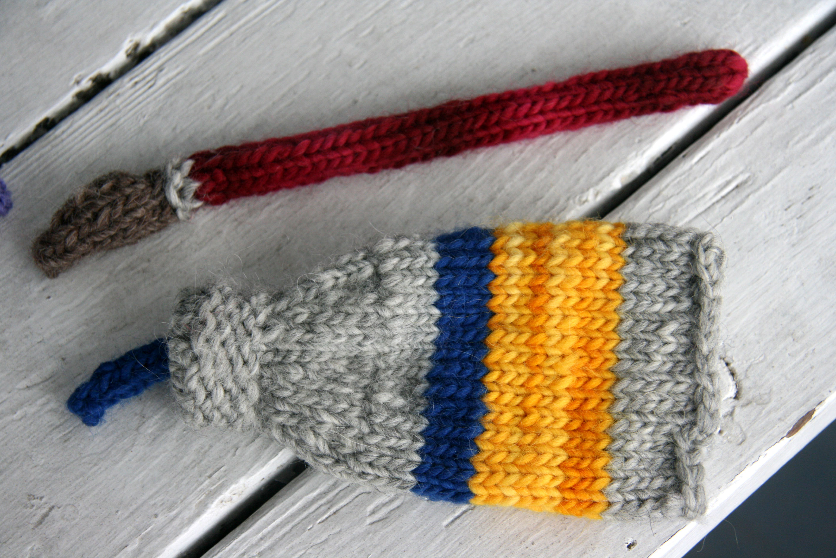 I’m taking a Literacy class this quarter and one of the requirements is to build a text set. I chose Art and Creativity for my theme, and I am working on a paper and a display to go with it.  It occurred to me that there might be a knitting opportunity in here as well.  I started looking around for patterns, and I found a few that I have now knitted up.