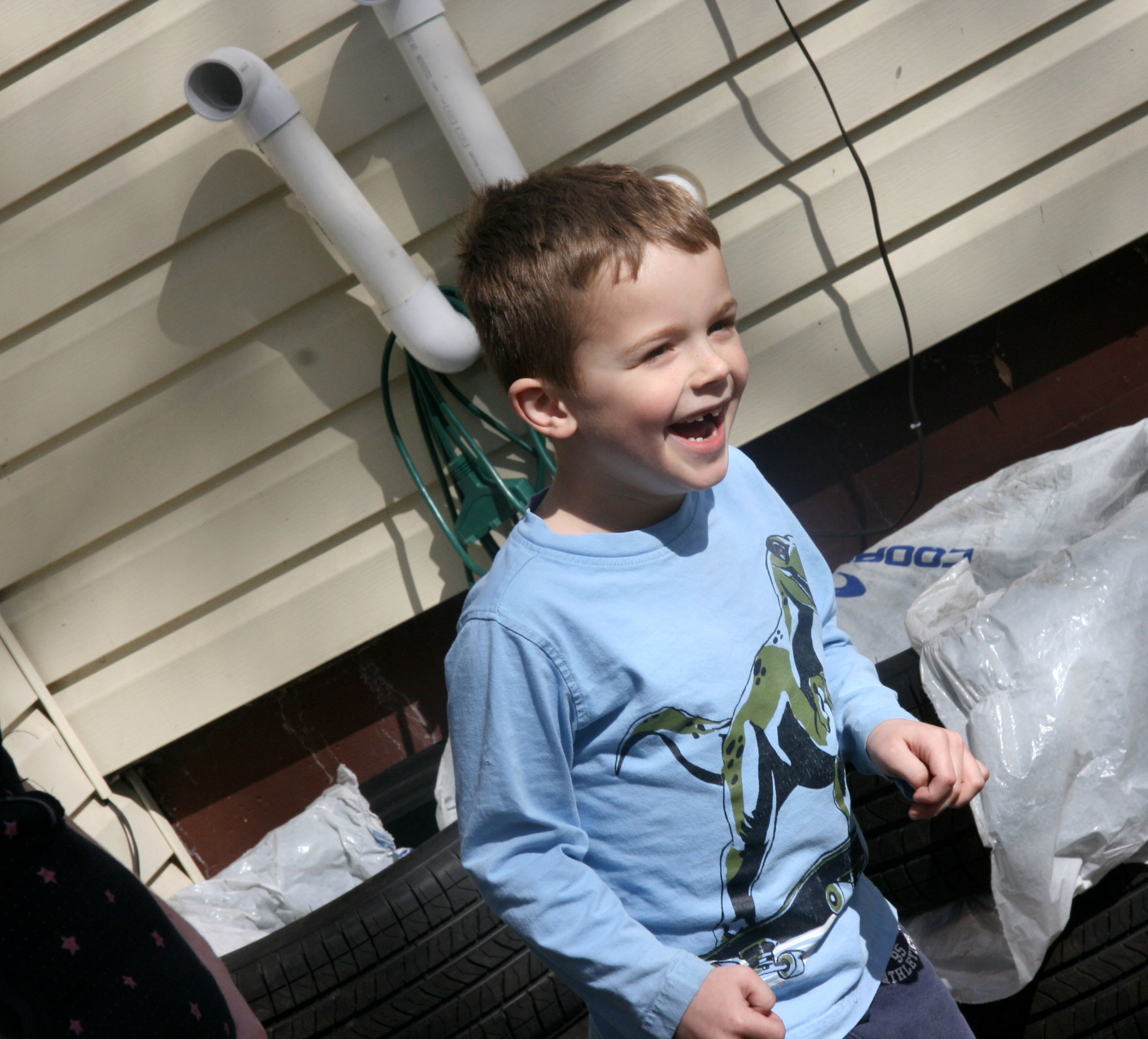 We went to our neighbors’ for a bit, and Davey was laughing and laughing at their dog who really wanted to catch a remote controlled helicopter.