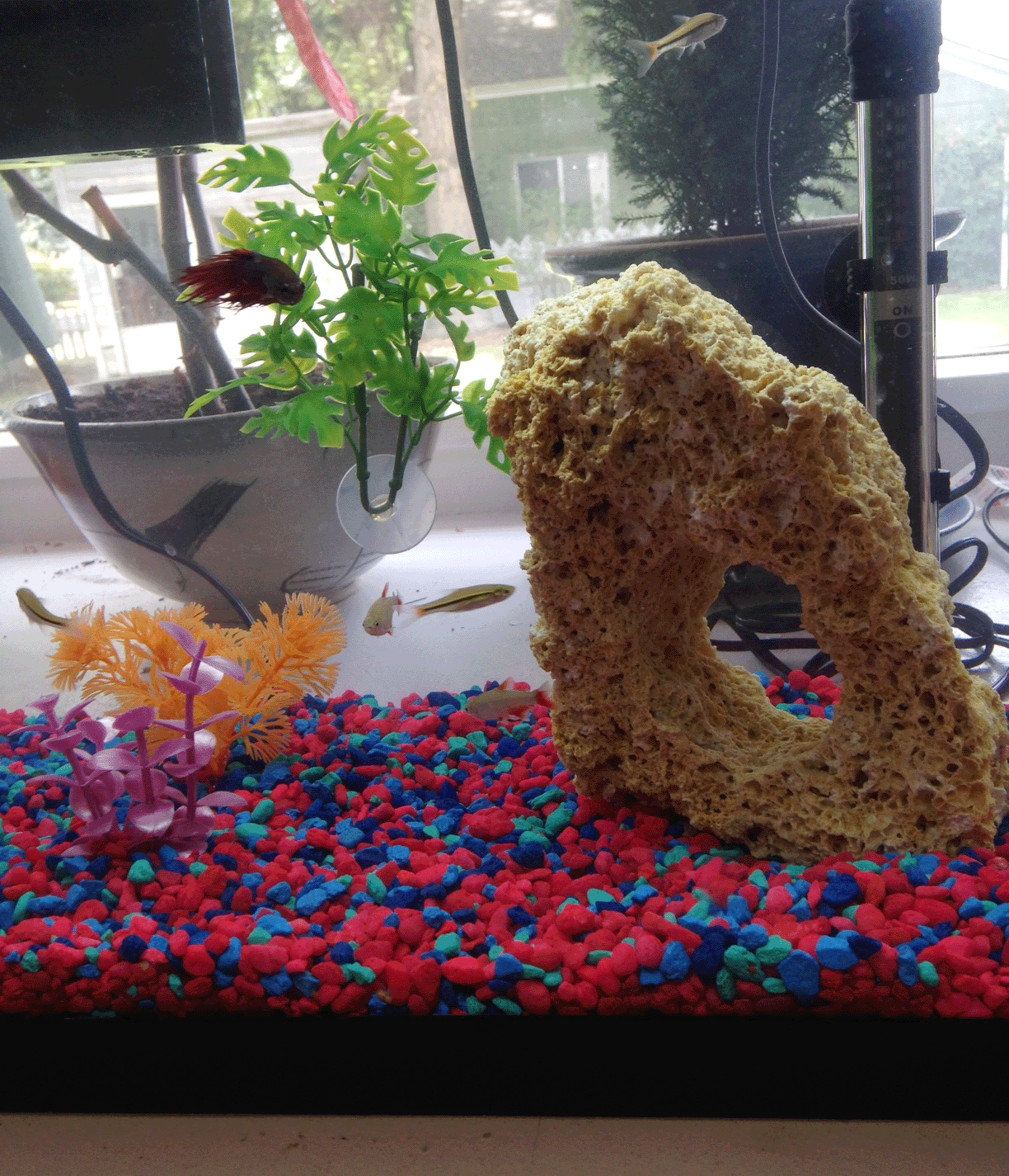 We decided to buy a small tank. David took over at that point. Turns out that he really really really enjoys fish. He has researched carefully to see what fish are compatible with bettas. Then he made daily trips for almost a week to get our water tested. It wasn’t easy to get our aquarium water habitable for fish. Turns out our water has an amount of nitrates in it that are not good for fish. Then the ph was too high. David was diligent though and kept working on the water.