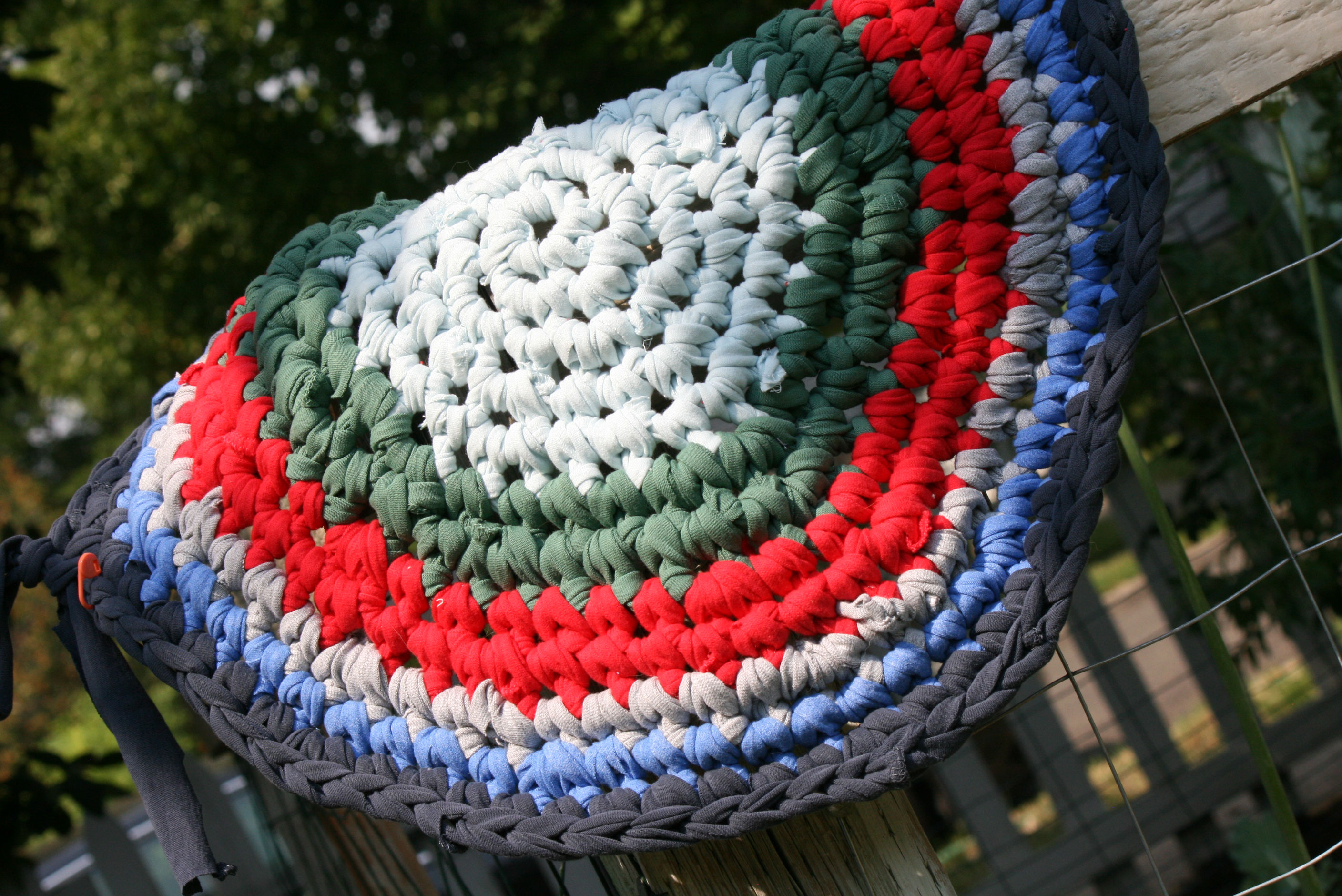 There are lots of patterns out there. I am using this one: Free Rug Crochet Pattern. It’s great fun, but next time I will try this one from Purl Bee. It’s just written a little more simply, and I think the results would be similar.