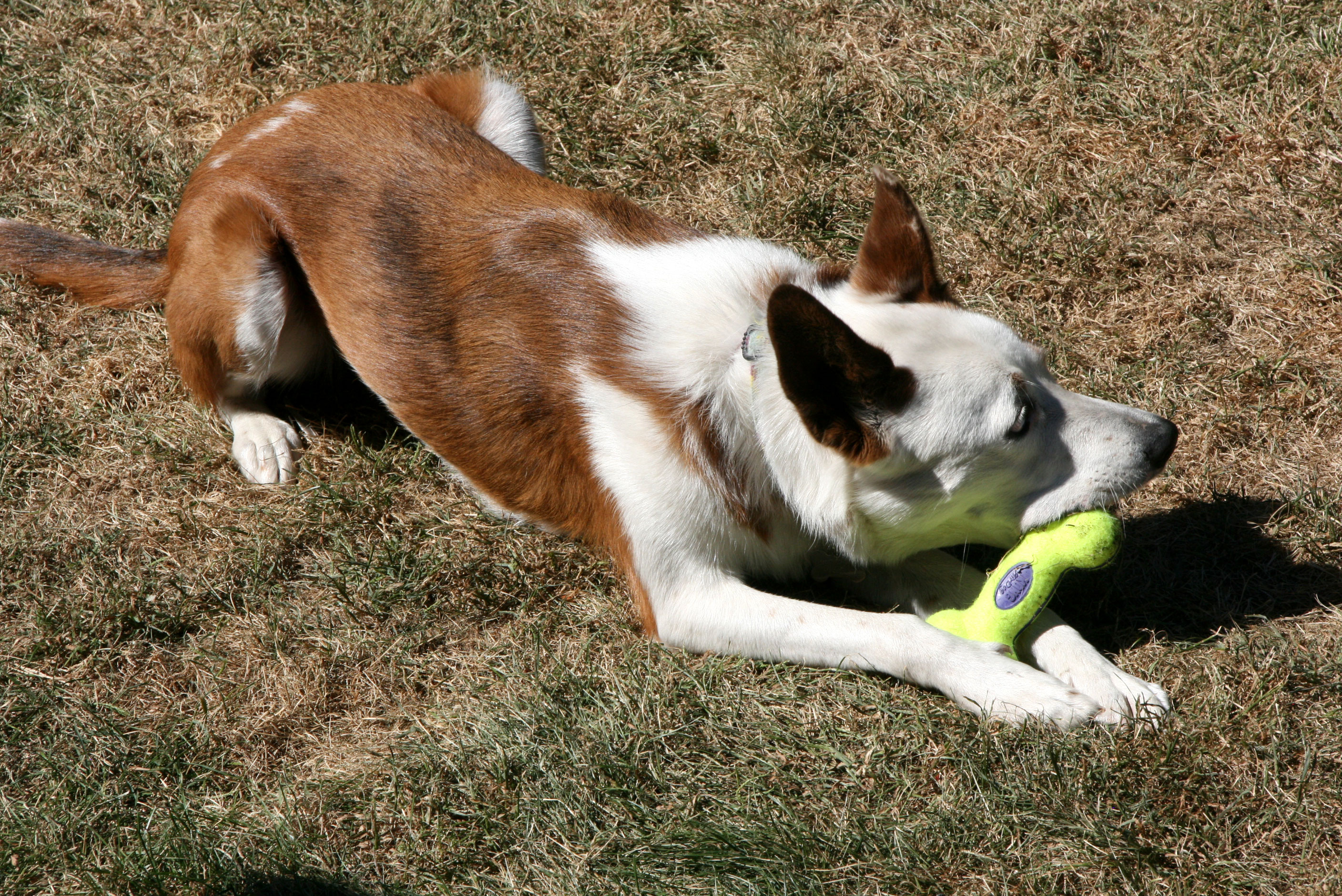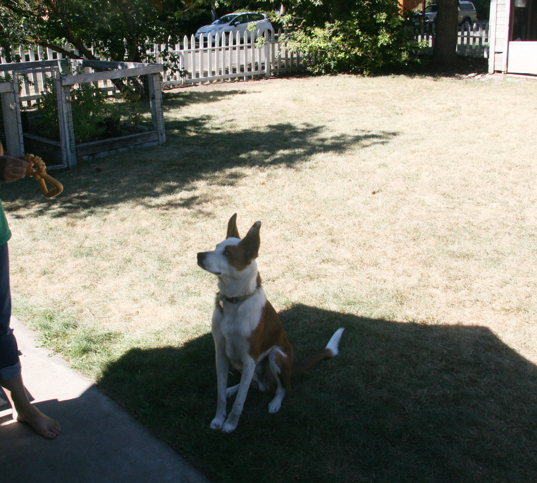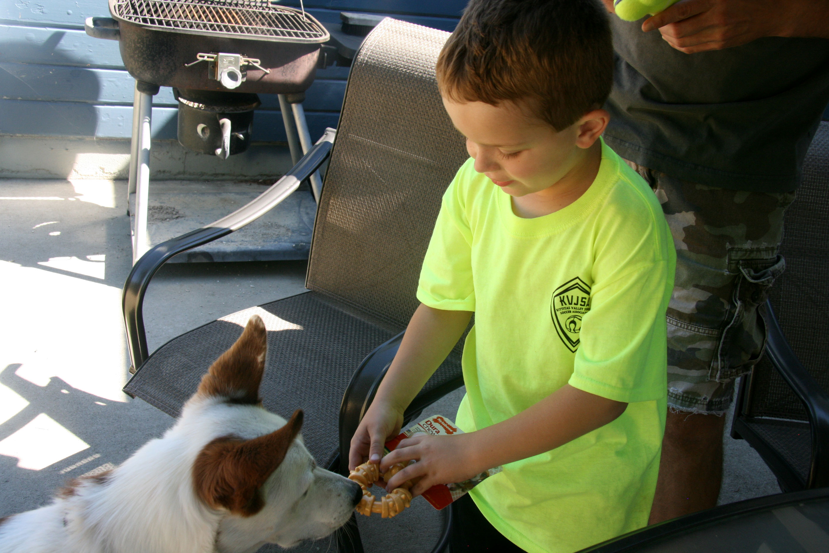 Buster will play chase until he falls over so he was happy for some chase time with Davey and his new toys.