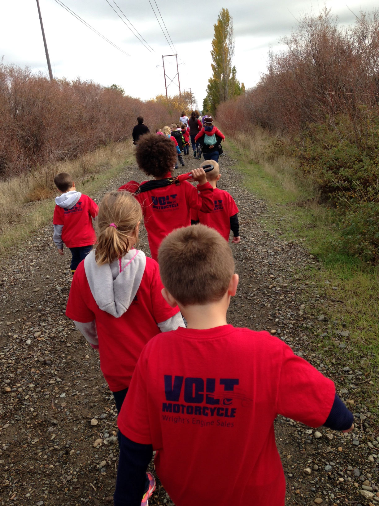 So today, I went with Davey’s class on a field trip to the fire station. It’s not far from his school so we walked there. This involved crossing a grassy field, walking down the side of a road for a short distance, crossing onto a gravel trail, and then shortly after that, we arrived at the station (we came in from behind!).