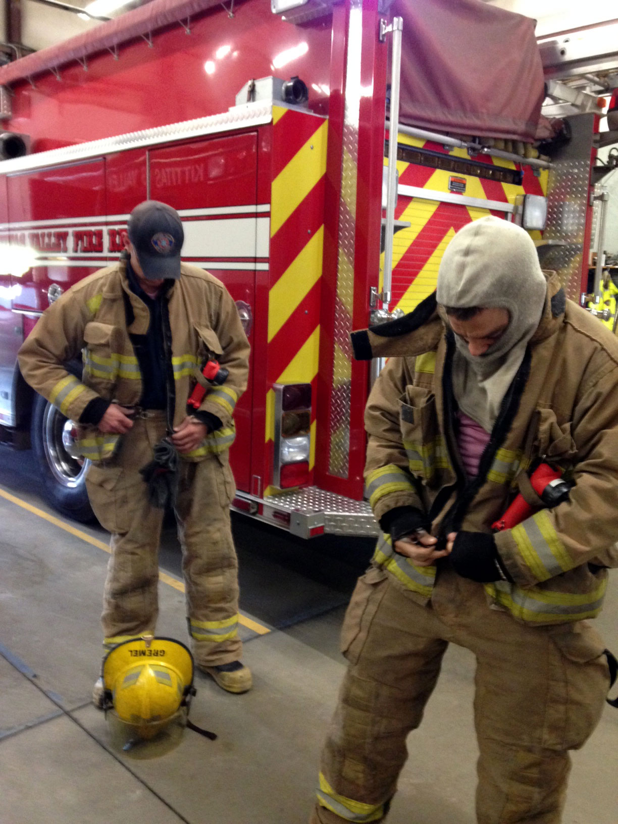 We were waiting to see the ambulance when all of a sudden they had a call to go to a house fire. All of a sudden, they were putting on gear and hustling like crazy.