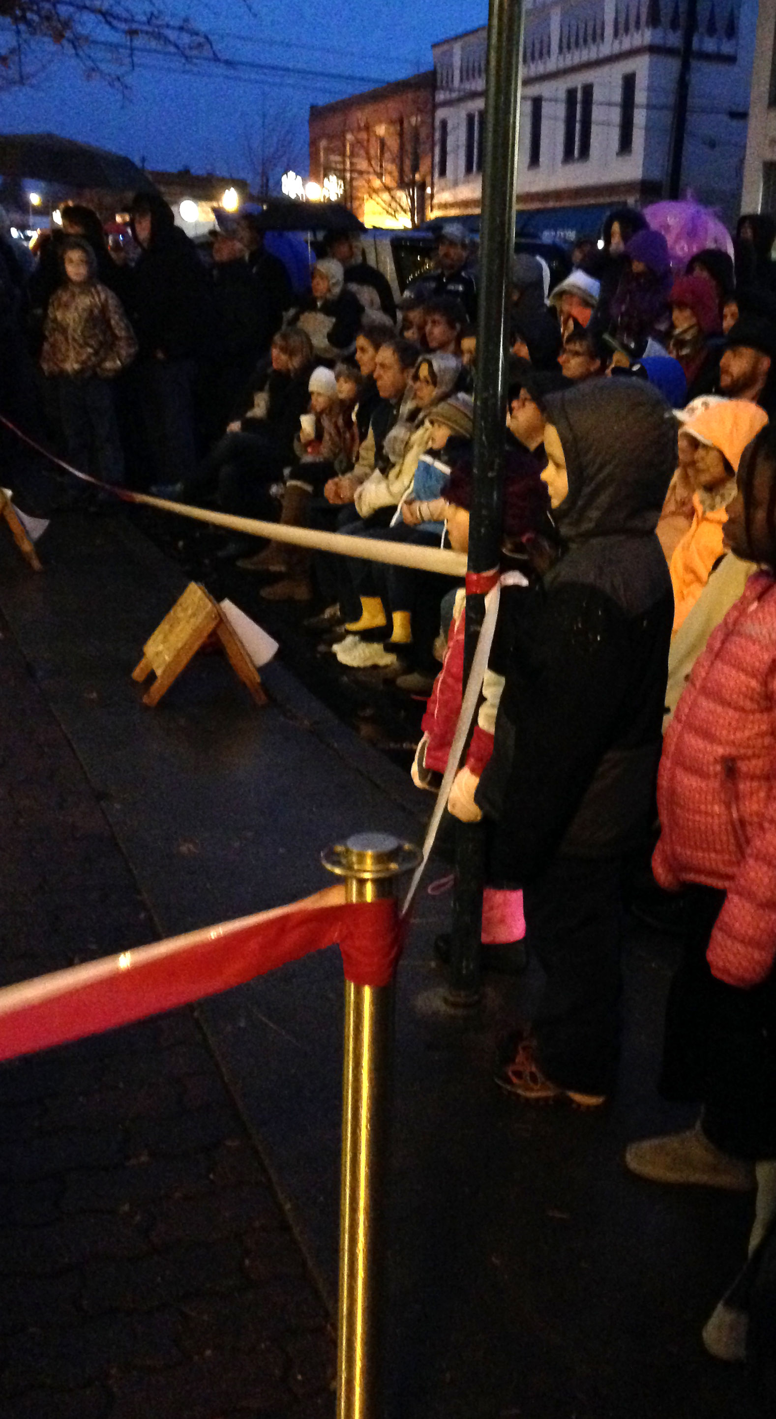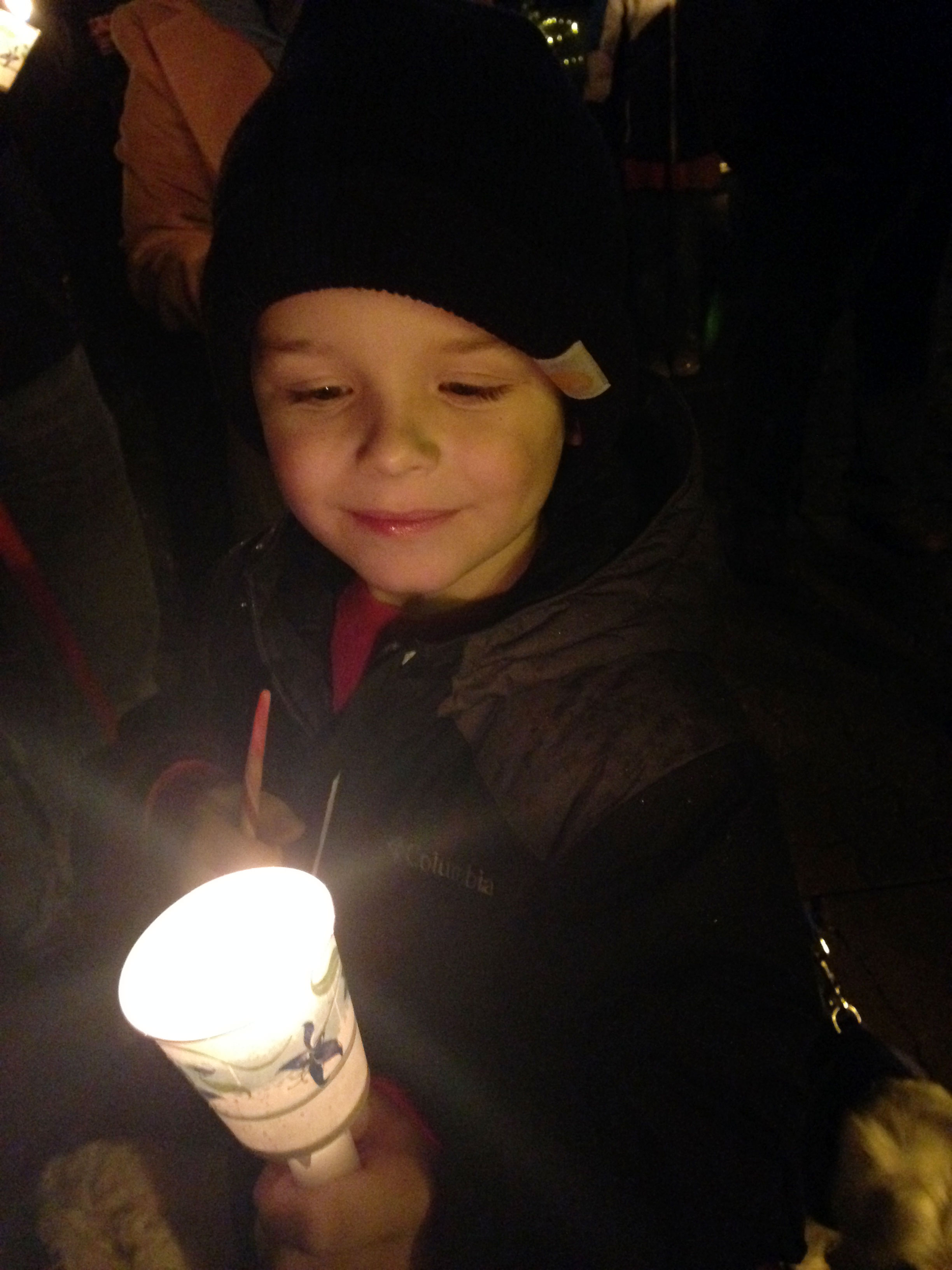 Davey likes to attend all the lightings. There were three of them spaced out over an hour. First, we went to a lighting at the Fairgrounds. Then we went to the Safeway parking lot and listened to a choir sing as they lighted the Christmas tree. Finally, we went downtown (all three of these things are within a mile of each other) and watched them turn on the lights there. The organizers handed out candles, and we sang Christmas carols and listened to the choir sing.