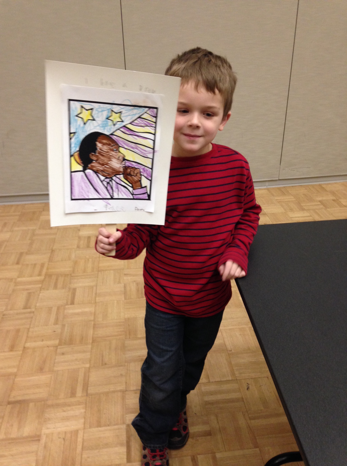 This all made quite an impression on Davey. We talked about MLK on the way to the presentation, and I tried to explain the idea of segregation. I gave him some examples like Black people had to use separate water fountains, had to sit separately at the movies, and had to go to different schools. He couldn’t really understand it, but he definitely decided that it was not right.