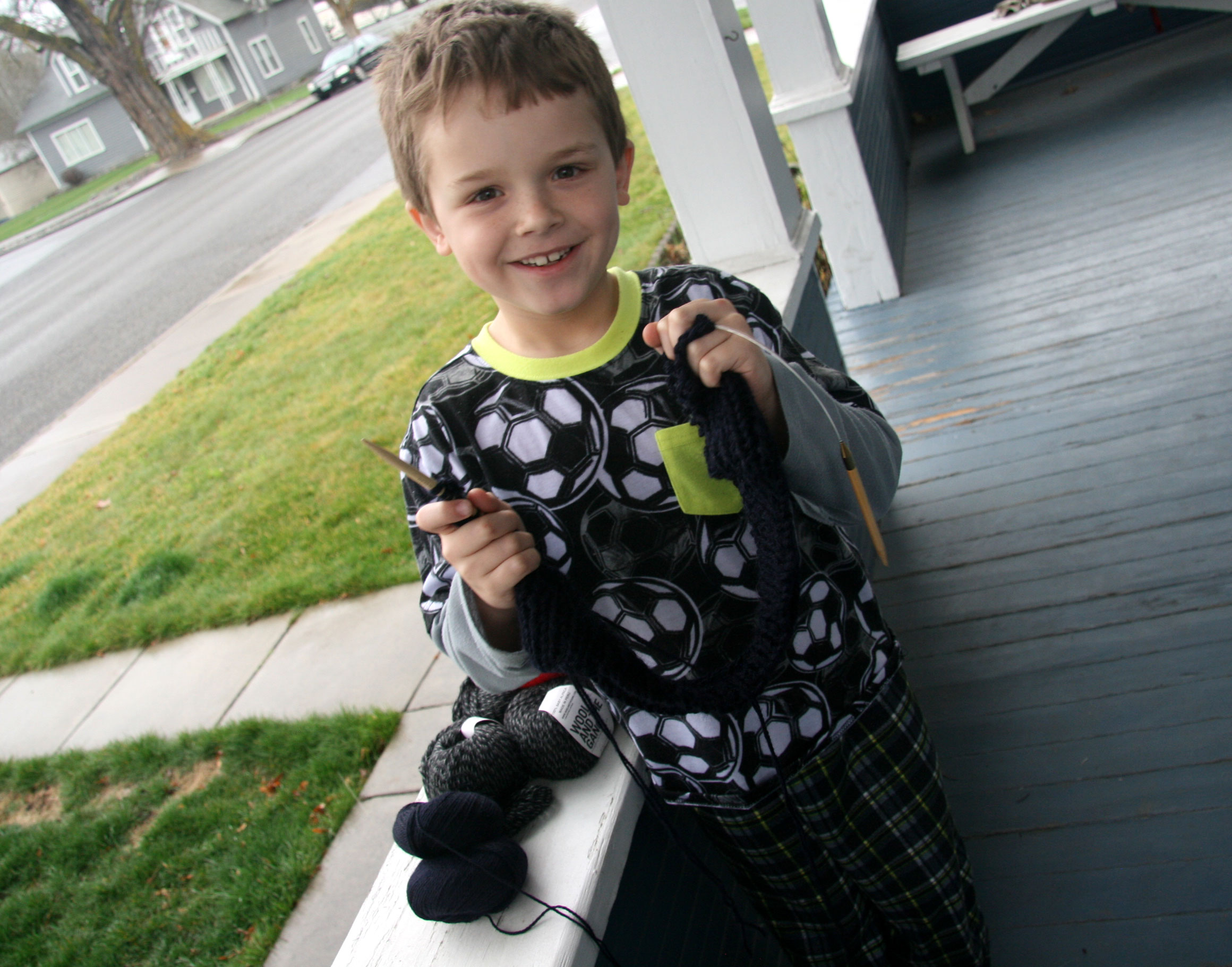 To make myself feel a little better about writing about the needles, I took a picture of Davey holding my project. His smile certainly helps!