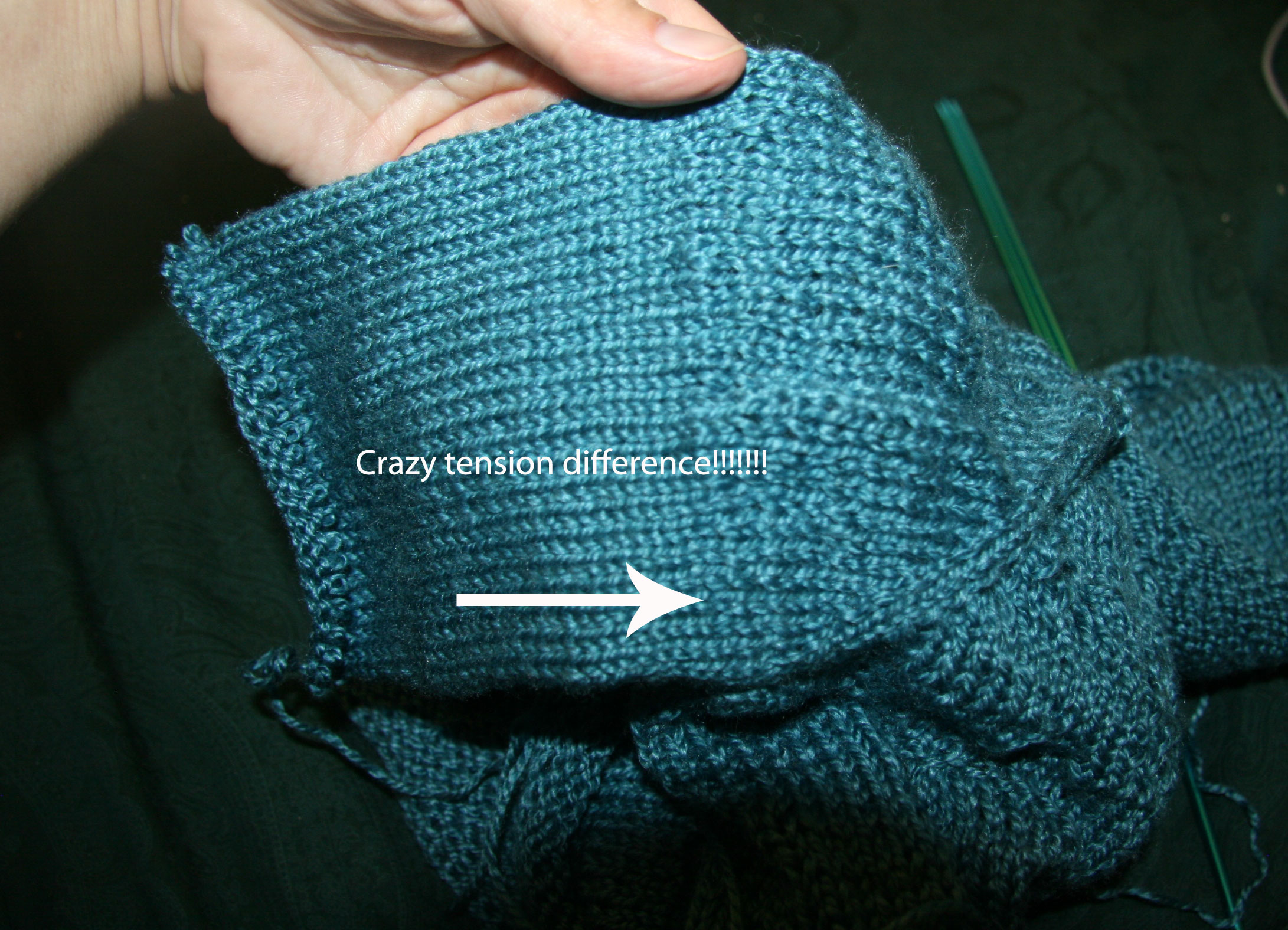 2. I’ve learned about the possible perils of using double pointed needles in the round versus circular flat knitting. Most of the sweater was knit flat. The sleeves were to be done in the round on dpns. Well, I chose what I thought were the same size needles, but they were a different brand. They were also metal, and I had knit the flat portion with bamboo needles. The difference between the sleeves and body is just a little bit noticeable.