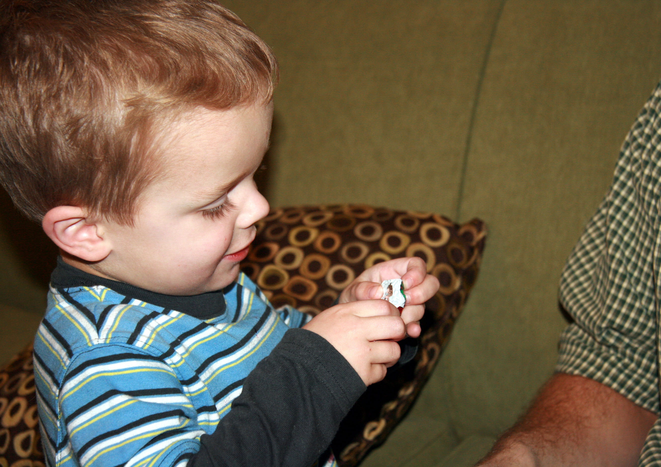 Davey and I made Christmas cookies yesterday. Davey is a very good chocolate chip placer. He was very focused.