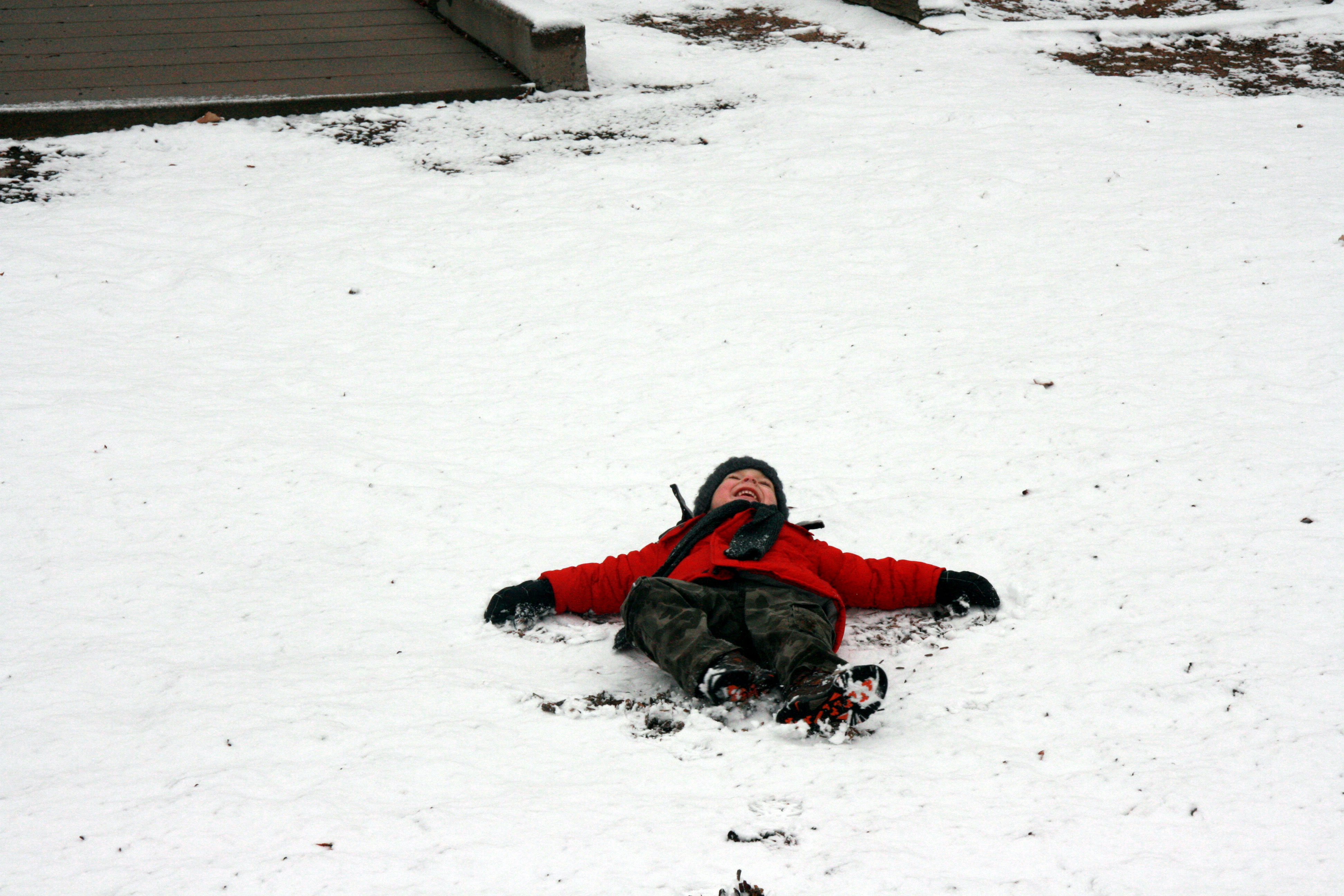So much so that he could not wait to make a snow angel. I realize this may seem just a little pitiful to those who are accustomed to lots of snow, but again we are snow newbies.