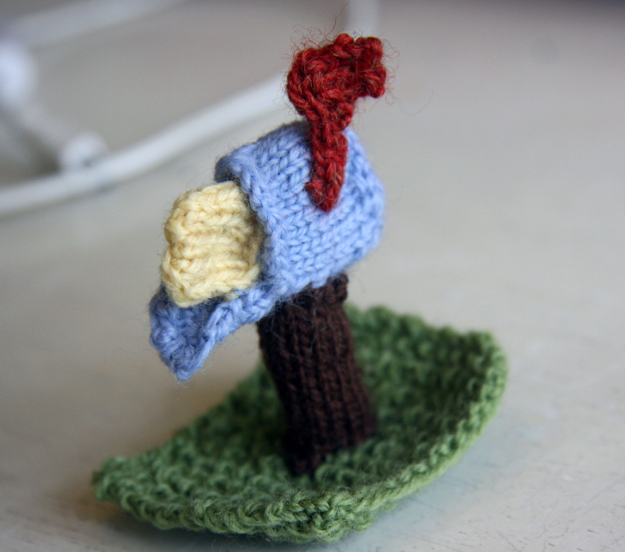 I knitted some little things for my dad for his Father’s Day. He built this awesome dollhouse a few years ago, and we thought it would be fun to have some knitted objects in it. So I looked at my great Teeny-Tiny Mochimochi book, and I picked out a few things to knit.