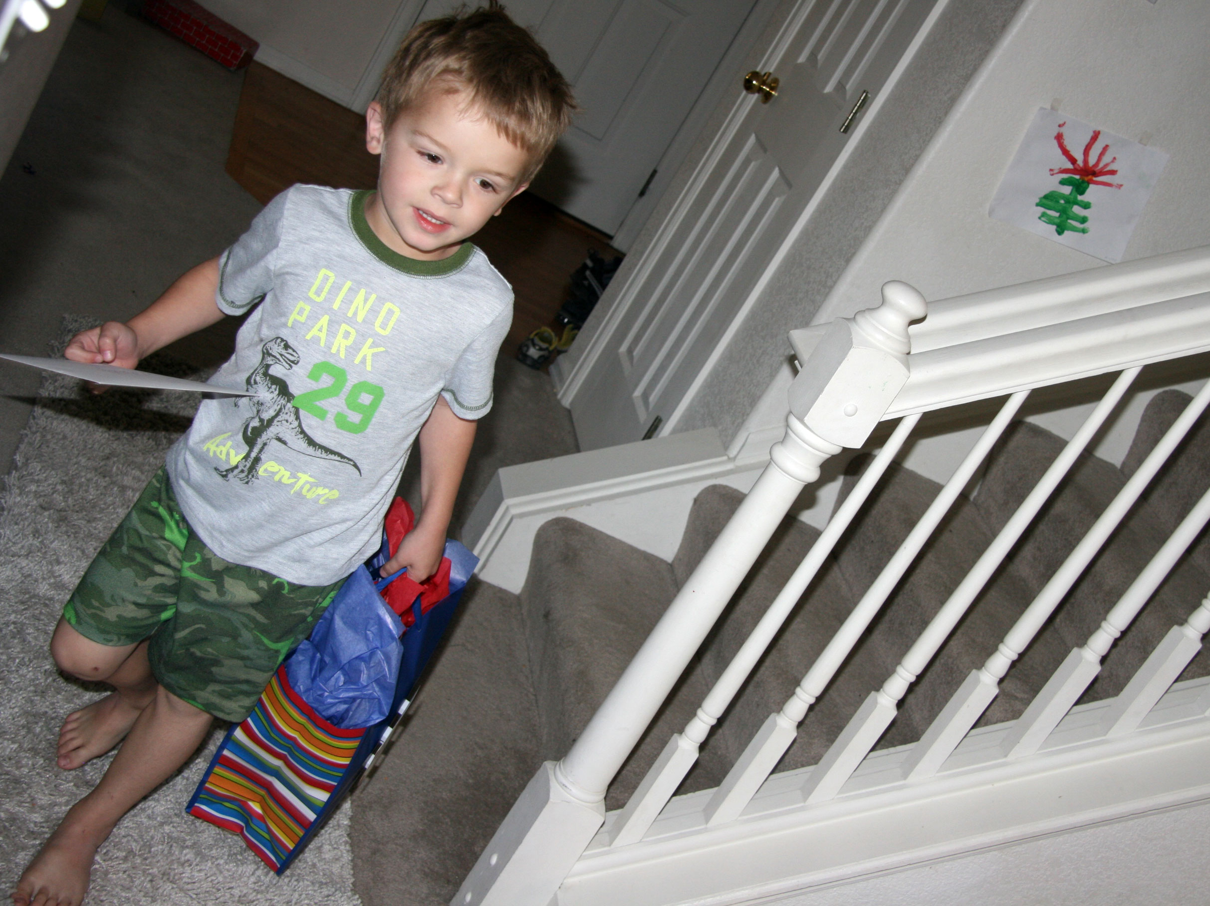 Davey loves delivering the presents. There’s not much he likes better than a good celebration. I am in a little bit of trouble for not buying balloons. He felt better though once he remembered that we are going to make cupcakes this afternoon.